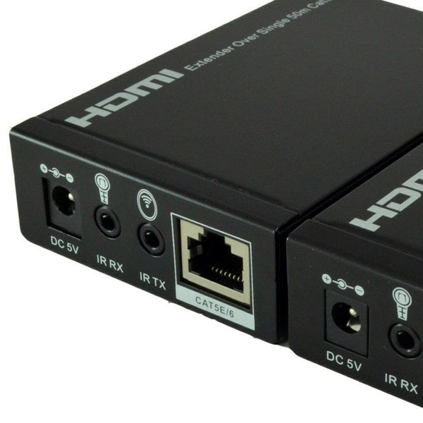 دستگاه افزایش طول 50 متری HDMI با یک کابل شبکه تصاویر را بدون نویز و به صورت FULL HD و با کیفیت بالا 1080P انتقال می دهد. لازم به ذکر است جنس کابل استفاده شده باید از نوع کابل CAT6-CAT5E تمام مس باشد.کارکرد دستگاه به این شکل هست که دستگاه فرستنده در مبدا با ورودی تصویر HDMI و آداپتور برق قرار می گیرد ، به طور مثال مبدا می تواند دستگاه DVR – نوت بوک – کامپیوتر – گیرنده دیجیتال – اندروید باکس باشد که تصویر داخلی رو از پورت HDMI خروجی می دهند و می توان با استفاده از کابل HDMI مرغوب اتصال بین دستگاه فرستنده برقرار کرد، نکته قابل ذکر در دستگاه Transmiter این هست که خروجی HDMI دوم برای نمایش همان تصویر ورودی اول هست به این معنی که خروجی کیس رو با کابل HDMI متصل کردین به دستگاه Transmiter و دیگه تصویر اون کیس رو ندارین شما در اون محل این قابلیت وجود داره در این دستگاه که از خروجی HDMI بعدی دوباره با کابل HDMI اتصال بدین به مانیتور و بتونید استفاده کنید و همزمان تصویر رو روی شبکه انتقال هم بدین.دستگاه گیرنده با خروجی پورت HDMI اتصال بین نمایشگر (تلویزیون – مانیتور – دیتا پروژکتور ) را برقرار می کند. فاصله بین دو دستگاه می تواند از طریق کابل شبکه مرغوب 50 متری پشتیبانی کند .
