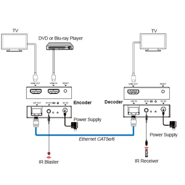 دستگاه افزایش طول 150 متری HDMI با یک کابل شبکه تصاویر را بدون نویز و به صورت FULL HD و با کیفیت بالا 1080P انتقال می دهد. لازم به ذکر است جنس کابل استفاده شده باید از نوع کابل CAT6-CAT5E تمام مس باشد.کارکرد دستگاه به این شکل هست که دستگاه فرستنده در مبدا با ورودی تصویر HDMI و آداپتور برق قرار می گیرد ، به طور مثال مبدا می تواند دستگاه DVR – نوت بوک – کامپیوتر – گیرنده دیجیتال – اندروید باکس باشد که تصویر داخلی رو از پورت HDMI خروجی می دهند و می توان با استفاده از کابل HDMI مرغوب اتصال بین دستگاه فرستنده برقرار کرد، نکته قابل ذکر در دستگاه transmiter این هست که خروجی HDMI دوم برای نمایش همان تصویر ورودی اول هست به این معنی که خروجی کیس رو با کابل HDMI متصل کردین به دستگاه Transmiter و دیگه تصویر اون کیس رو ندارین شما در اون محل این قابلیت وجود داره در این دستگاه که از خروجی HDMI بعدی دوباره با کابل HDMI اتصال بدین به مانیتور و بتونید استفاده کنید و همزمان تصویر رو روی شبکه انتقال هم بدین.دستگاه گیرنده با خروجی پورت HDMI اتصال بین نمایشگر (تلویزیون – مانیتور – دیتا پروژکتور ) را برقرار می کند. فاصله بین دو دستگاه می تواند از طریق کابل شبکه مرغوب 150 متری پشتیبانی کند .یکی از قابلیت های ویژه می توان اشاره نمود به IP بودن دستگاه فرستنده و گیرنده که بدون نیاز به ارتباط مستقیم می توان از شبکه داخلی هم استفاده نمود .