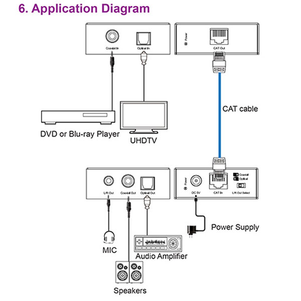 گسترش سیگنال های صوتی دیجیتال اپتیکال و کواکسیال تا فواصل 300 متر روی یک کابل CAT